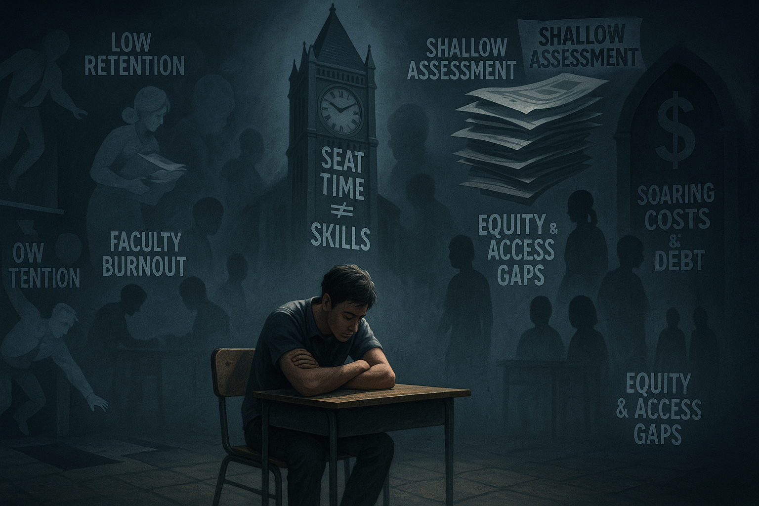 The Problem: Education is in a global crisis, characterized by disengaged learners, significant skill gaps, and outdated systems that no longer serve the needs of today’s students.